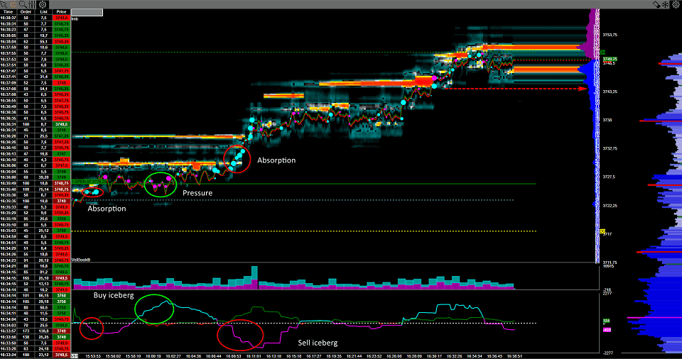 Large Order Accumulation Detection - recognizes quiet demand and absorption zones